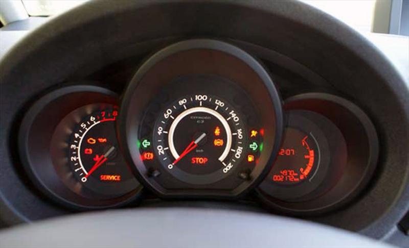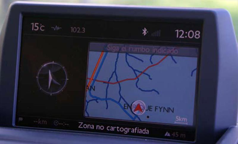De los instrumentos, el velocímetro tiene mayor volumen que el tacómetro, que a su vez es más grande que la tercera esfera para temperatura y combustible. El pomo de la palanca de cambios es metálico. Muy agradable la consola central con los controles de aire y sonido y sobre ella, ya en la plancha, tres generosas toberas direccionables.
