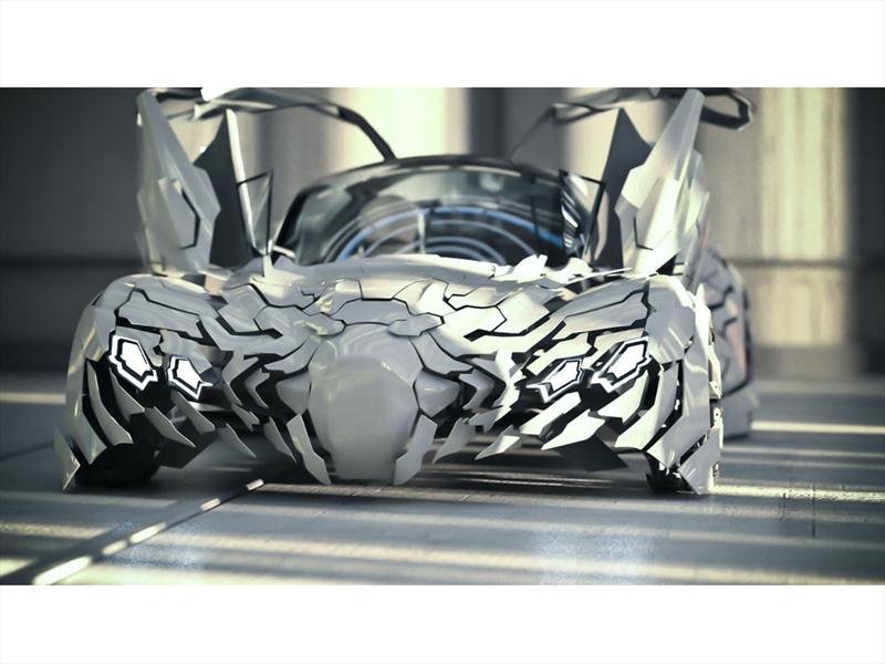 Este peculiar prototipo consta de 250 paneles adaptativos hechos de fibra de carbón que se “acomodan” de acuerdo a las necesidades aerodinámicas del auto. Por ejemplo pueden estar planos y rectos para reducir la resistencia al avance al momento de acelerar, son capaces de levantarse para disminuir la velocidad del auto o abrirse completamente para ayudar en curvas, así como incrementar la carga aerodinámica. Además de lo anterior, ayudan a recargar la unidad por medio de la recolección de la energía solar.