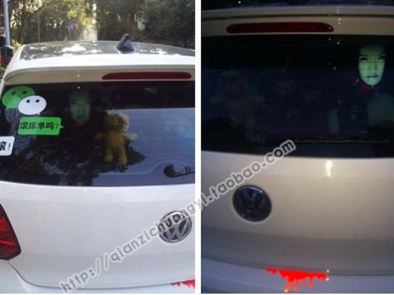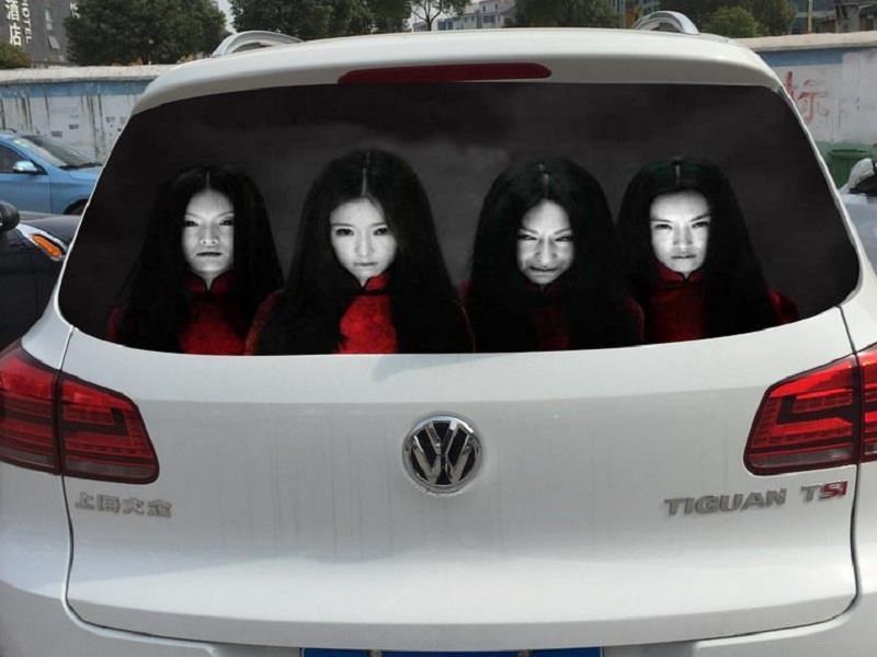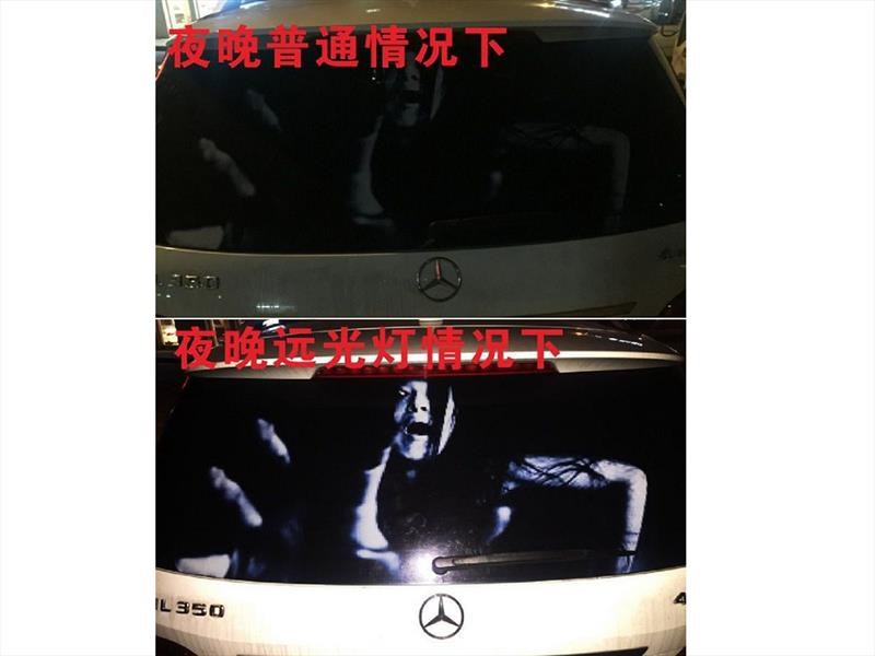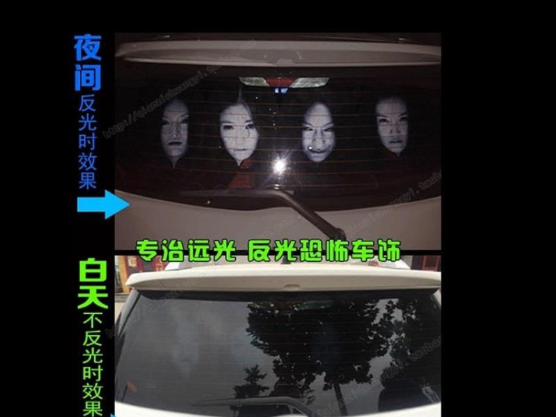 Hace ya meses que en China vienen castigando a aquellos que manejen con las luces altas, y parece que no es suficiente. En algunas provincias la gente comenzó a hacer justicia por mano propia colocando en la luneta trasera calcomanías reflectantes terroríficas de tal manera que cuando el auto que va atrás lleva las luces altas encendidas aparece una imagen espectral.