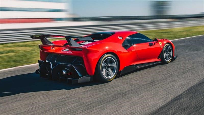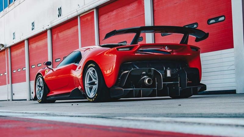 Es una Ferrari exclusiva para pista, que usa de base a la 488 GT3. Tiene un diseño afilado, con un frontal donde se luce un parabrisas muy inclinado. La silueta es algo particular, hasta polémica, con tomas de aire en el frente, los laterales y detrás de la ventanilla que pueden dar una sensación de continuidad y profundidad.