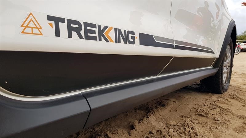 Entre las características estéticas más destacadas están los protectores negros de zócalos y guardabarros, pegatinas Trekking, tratamiento oscuro para parrilla, faros, techo y barras de carga, e inclusive logos de FIAT. Remata una pegatina oscura en el capot que le da un toquecito Jeep al Argo.