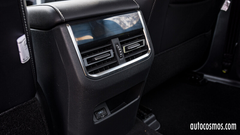 Detalles interesantes de las plazas traseras los encontré en dos ganchos en los respaldos, ideal para bolsas, carteras o mochilas, un puerto USB de carga y lo más interesante, por lo poco común en el segmento, que los cojines de los asientos, se pueden plegar hacia arriba, como en la Honda Ridgeline o en la Ford F150, aunque no con un suelo completamente plano.