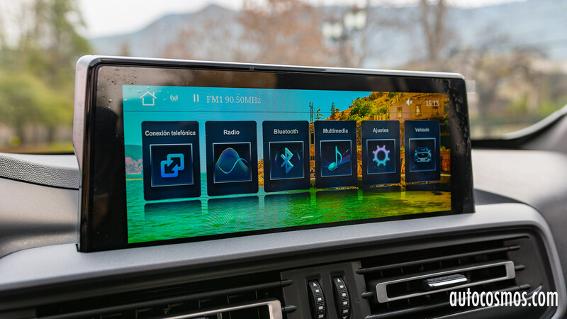 La misma fuente del instrumental la vemos en el sistema multimedia enmarcado en una pantalla de 10" para las versiones full y de 8" en los demás. La interfaz es muy moderna, pero que no tiene conectividad para Apple CarPlay o Android Auto.