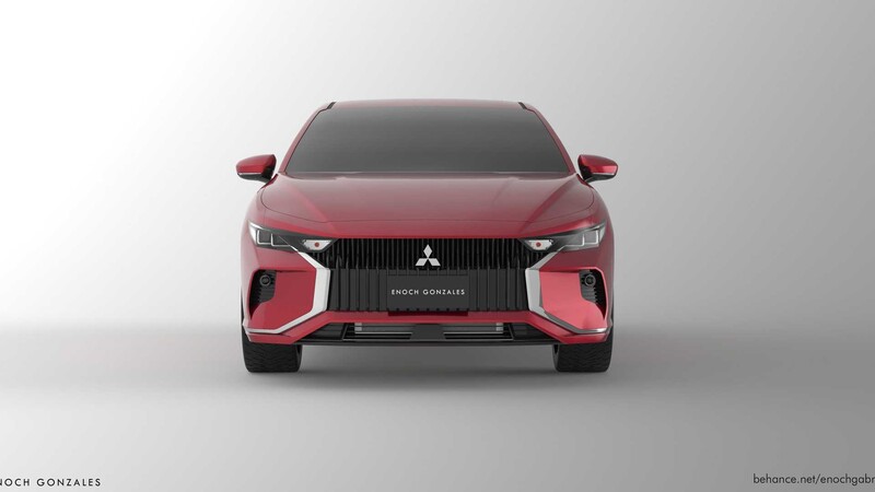 En el frente del Lancer proyectado se destaca una gran parrilla rectangular, demarcada en casi todos sus costados por líneas plateadas que surgen desde las pequeñas ópticas (que también están unidas a la parrilla) y que bajan en forma de “C” casi hasta las ruedas delanteras, replicando a grandes rasgos lo visto en modelos recientes de la marca, como la L200, el Outlander y el Eclipse Cross.