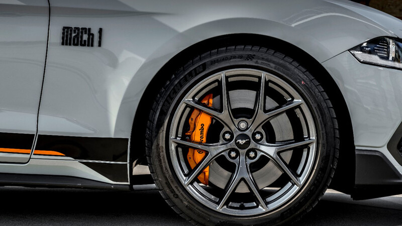 El Ford Mustang Mach 1 viene en color “Figther Jet Gray” y ofrece una combinación especial entre el gris exclusivo de la carrocería con líneas naranjas y negras. Los colores “Blanco Oxford”, “Gris Plata” y “Negro Ebony” vendrán combinados con líneas negras y rojas de fábrica.