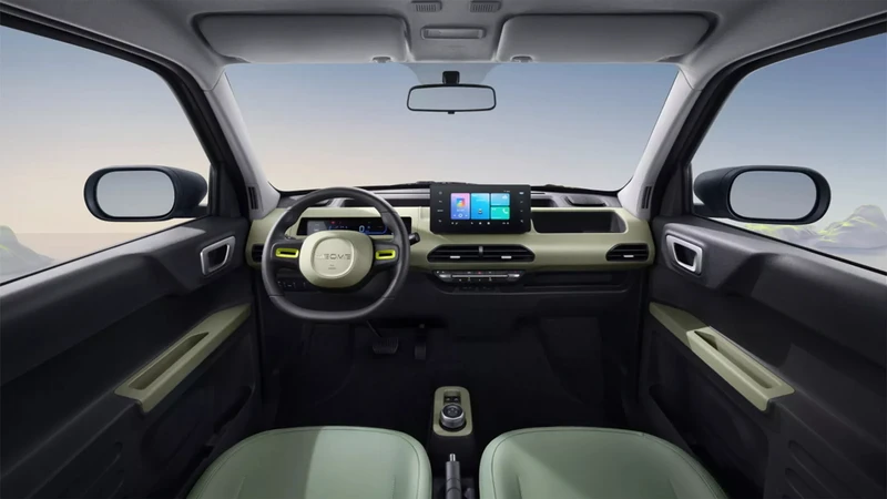 Aprovechando el poco espacio que ocupa la mecánica EV y la posibilidad de disponer de una carrocería de laterales rectos, el Panda de Geometry ofrece un interior amplio, con cuatro asientos o la posibilidad de llevar mucha carga. La cabina luce simple y práctica con varios portaobjetos y dos pantallas, de 9,2 y 8 pulgadas para instrumental y multimedia, respectivamente.