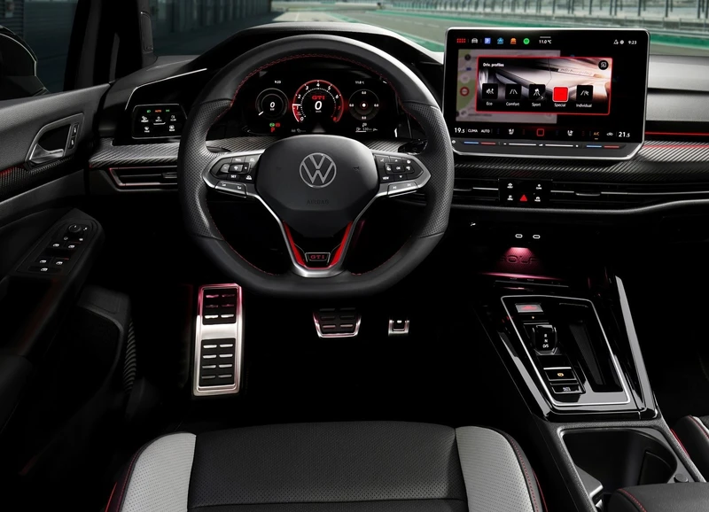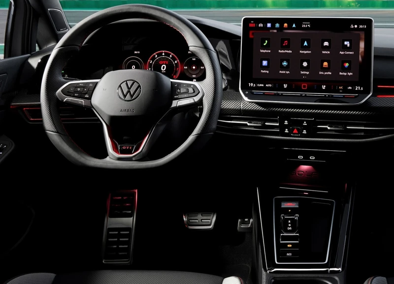 Por dentro, el nuevo GTI Clubsport sigue con los cambios estrenados en el convencional, con la nueva pantalla de 12,9” y la corrección de los botones capacitivos del volante, reemplazándolos por unos tradicionales que funcionan mucho mejor y no se pueden accionar accidentalmente. Los cambios con respecto al GTI convencional se ven en los asientos de tela ArtVelours y algunos apliques en la consola y el torpedo.Cabe destacar que el nuevo sistema de infoentretenimiento ya cuenta con la integración de ChatGPT para obtener más información con comandos más sencillos.