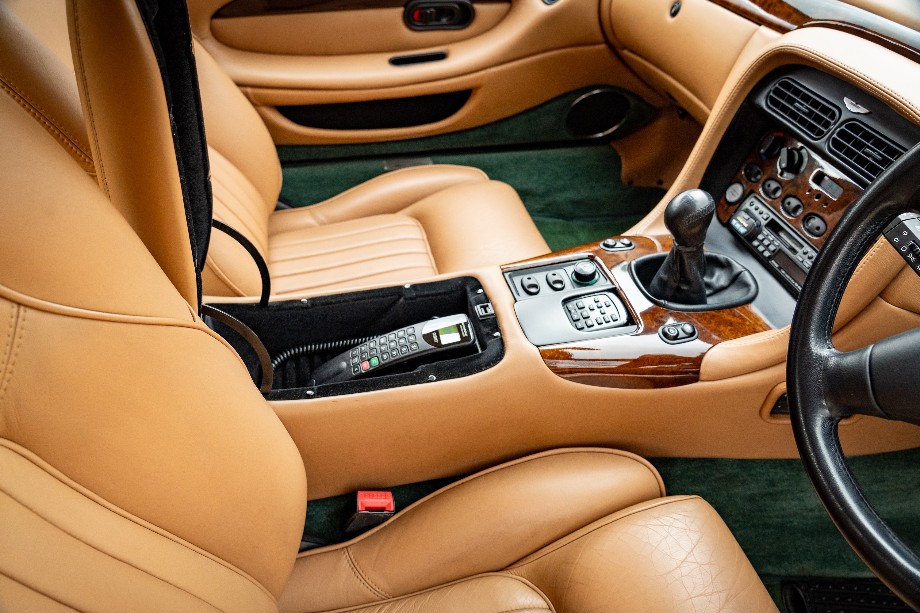 Por otro lado, el habitáculo del DB7 cuenta con elementos como los asientos de cuero, un teléfono Motorola dentro del portaobjetos central, y curiosamente, cuenta con equipo de audio Alpine con dos amplificadores de alta potencia en el baúl, subwoofer entre los asientos traseros y mando a distancia perfectamente integrado en la consola central, todo gracias a un encargo especial de Elton John, quien seguramente quería disfrutar de su último álbum en ese entonces: "Made in England", en un auto hecho en Inglaterra.