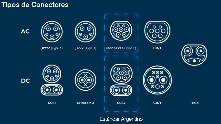 En Argentina, y en la mayoría de los mercados globales, los conectores más utilizados son el Tipo 2 para carga en corriente alterna (CA) y el CCS2 para carga en corriente continua (CC), ya que ofrecen compatibilidad con una amplia variedad de vehículos y cargadores.