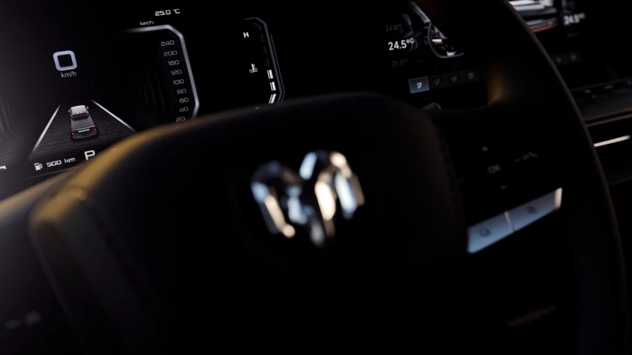 Una de las grandes incógnitas de la RAM Dakota era su interior, y la marca ya empieza a adelantarnos algunos detalles, como el volante, el tablero, parte del torpedo, y la consola central.