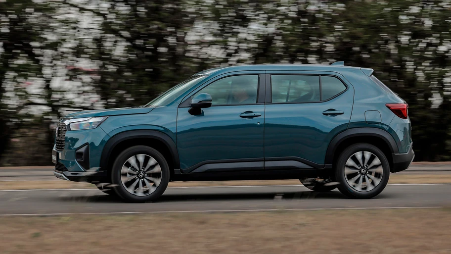Visto de perfil, el WR-V se destaca por su simplicidad, con la línea de cintura bien marcada, que parte desde el capot hasta terminar subiendo hacia el pilar C. Al menos en Brasil, las llantas son de 17”, con neumáticos 215/55, y el auxilio es temporal, con medida 145/90 R16.