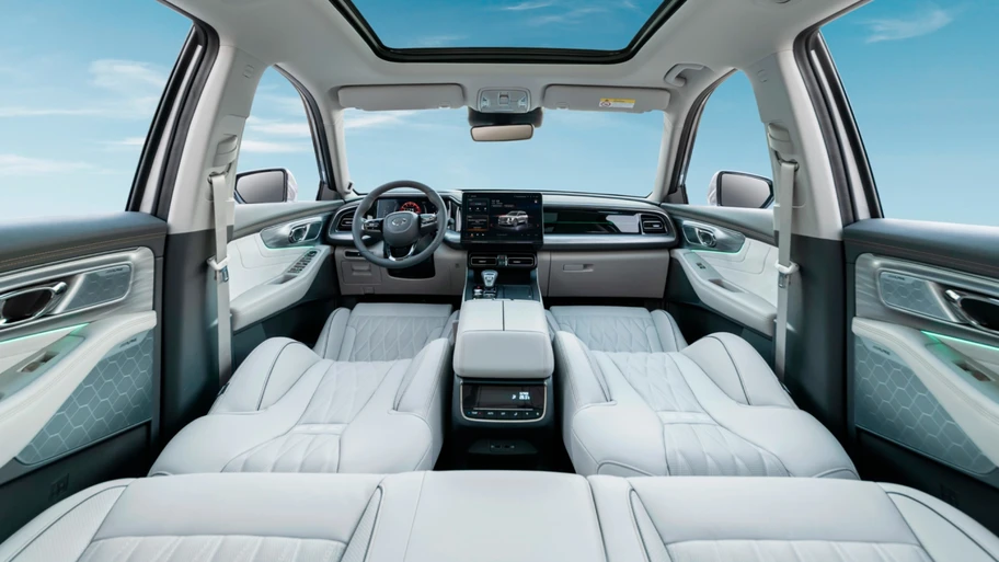 Puertas adentro, el GS8 sigue la sobriedad de los modelos de GAC, y se destaca por la diversidad de materiales, incluyendo apliques suaves al tacto y otros “cepillados”, además de varios espacios de guardado, incluyendo el puente chino.