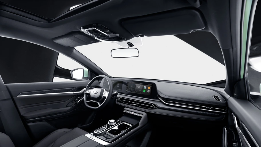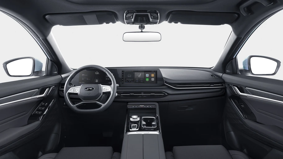Puertas adentro, el JS6 se destaca por las líneas simples y horizontales, la consola central elevada con puente chino, y dos pantallas de 12,3” cada una, en un panel que sobresale del torpedo.