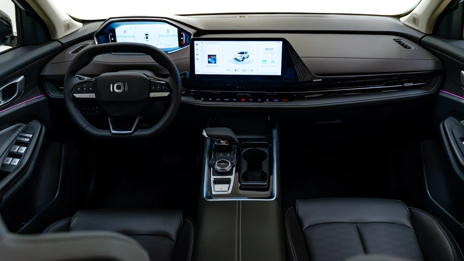 Puertas adentro, el Changan CS55 Plus se destaca por contar con una disposición que recuerda al i-Cockpit de Peugeot, especialmente por el instrumental en lo alto del torpedo, y cuenta también con un volante de base y parte superior planas, una pantalla tipo “flotante” con algunos comandos hápticos debajo, y la consola central elevada, con puente chino.