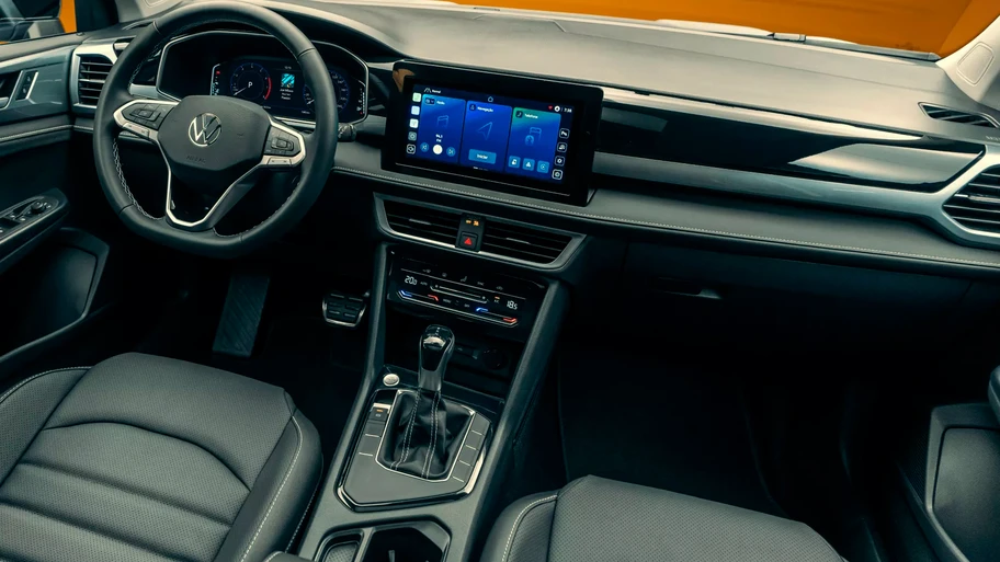 A nivel interior, se destaca la nueva disposición del torpedo, siguiendo los lineamientos vistos en los nuevos Tera y T-Cross, con la pantalla multimedia en posición flotante, y sumando un aplique en forma de “X” que interconecta las salidas de aire laterales, entre otros. Por otro lado, el nuevo Taos vuelve a los comandos físicos en el volante, mientras que los del climatizador siguen siendo capacitivos.