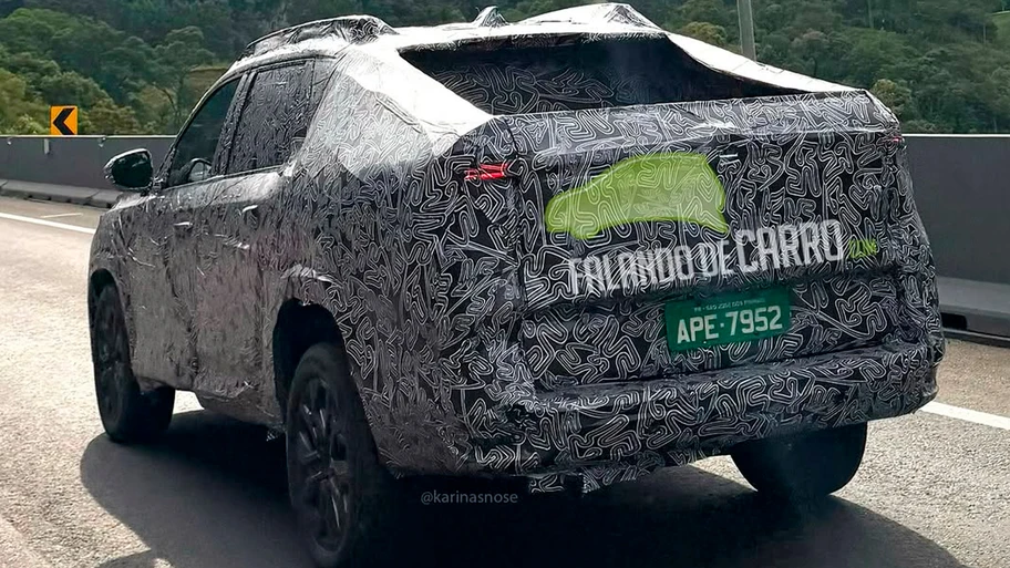 En la parte trasera, el camuflaje parece esconder un remate de techo prolongado como el de la Tesla Cybertruck, pero también podría estar ocultando una barra de San Antonio. La zaga parece ser bastante alta, y las luces –que podrían estar interconectadas- están en una posición elevada. Además, el portón tiene una forma peculiar, con la parte inferior “metida hacia adentro”, haciendo que el paragolpes sobresalga.