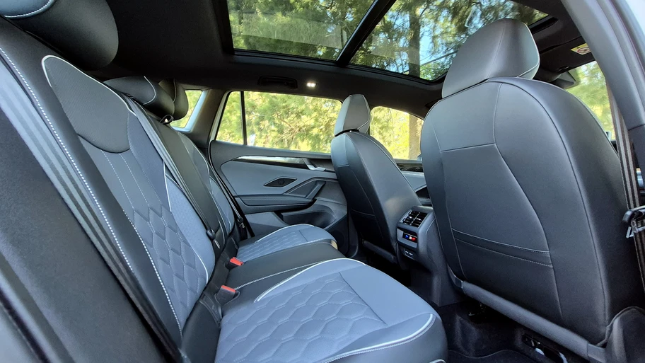 Al conservar la misma distancia entre ejes, pero no tener que hacer espacio a una tercera fila, el espacio atrás es monumental. Lamentablemente los asientos no se respaldan, pero hay todo tipo de amenidades, incluyendo salidas de aire direccionales, puertos USB, control de climatización, cuero y más.