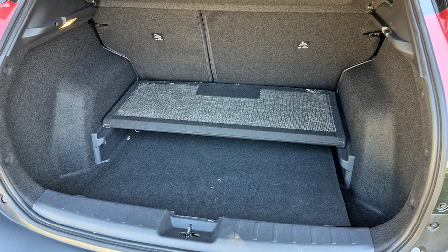 El baúl crece 38L y ahora ofrece unos muy saludables 470L. El área de carga está bien tapizada, se puede ampliar rebatiendo el respaldo con corte asimétrico y tiene doble piso, pero debajo de todo hay una rueda temporal.
