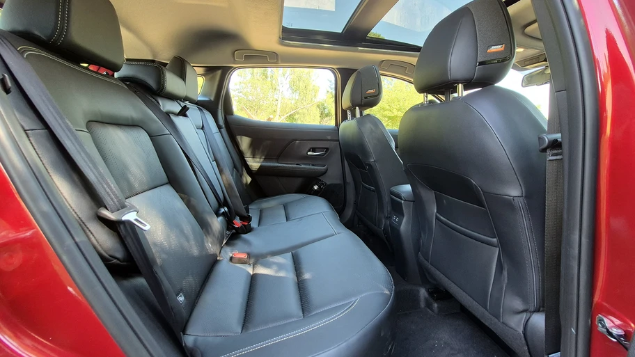 Atrás hay algo de tela en las contrapuertas, apoyabrazos, dos portamapas y misma cantidad de puertos USB C, lo que no hay son salidas de aire, ni direccionales, ni toberas debajo de los asientos, algo que los pasajeros me reclamaron en un día de calor.
