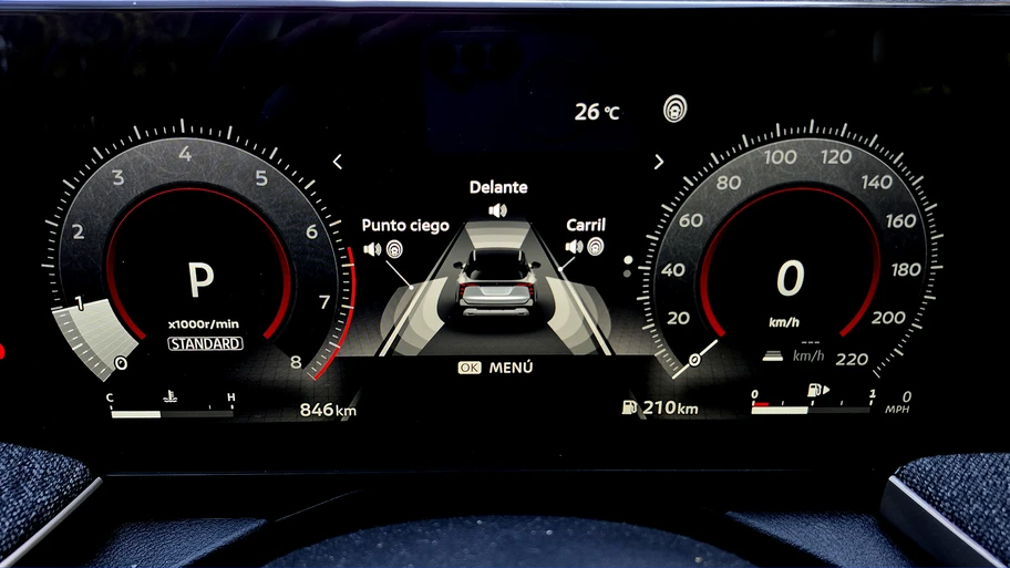 Las dos pantallas son grandes y están tanto a la vista como al tacto. El cuadro de instrumentos tiene dos visualizaciones, en ambas con toda la info. clara, que además se maneja fácilmente desde el volante.