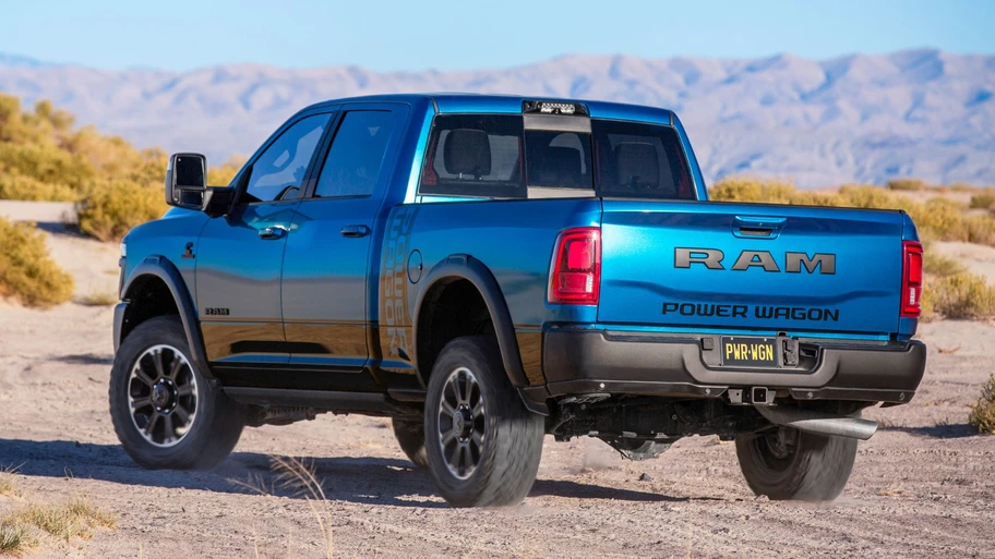 La Power Wagon conserva su configuración de ejes rígidos tanto adelante como atrás, ambos con bloqueos electromagnéticos. Además, cuando el bloqueo no está activado, el eje trasero opera como un diferencial autoblocante mecánico, mejorando la tracción de manera pasiva. Los ejes, fabricados por American Axle Manufacturing, cuentan con carcasas de 235 mm adelante y 292 mm atrás, además de semiejes reforzados de 38 mm, para mover más facilmente los neumáticos todoterreno de 34 pulgadas.